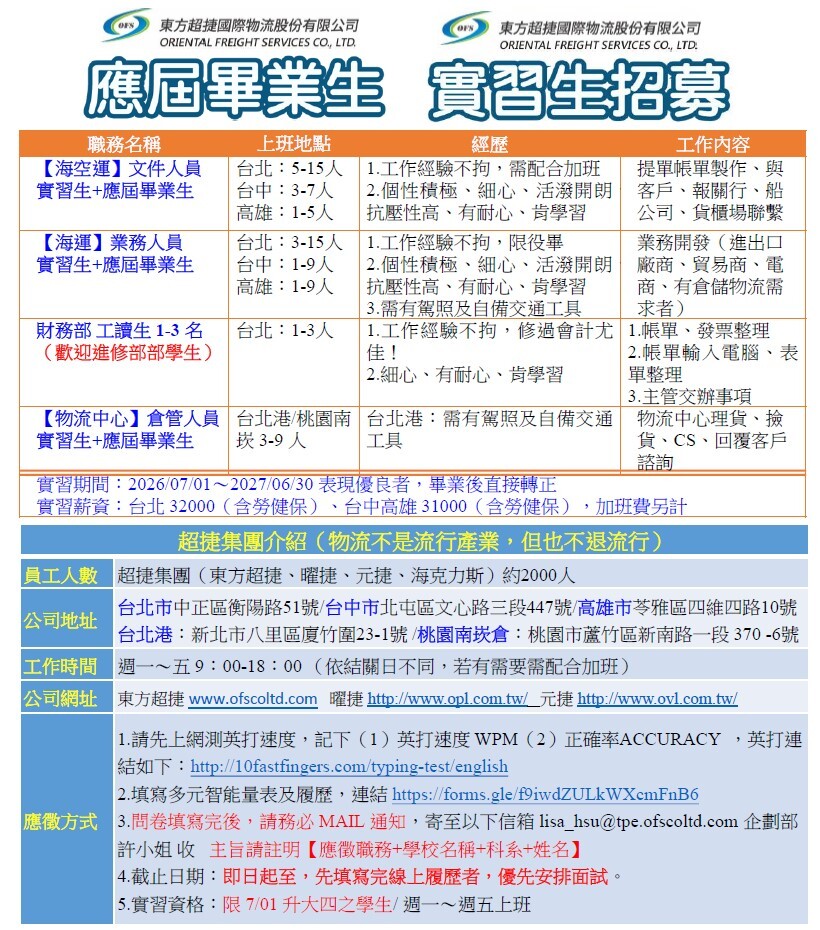 【實習資訊】超捷集團實習申請開放